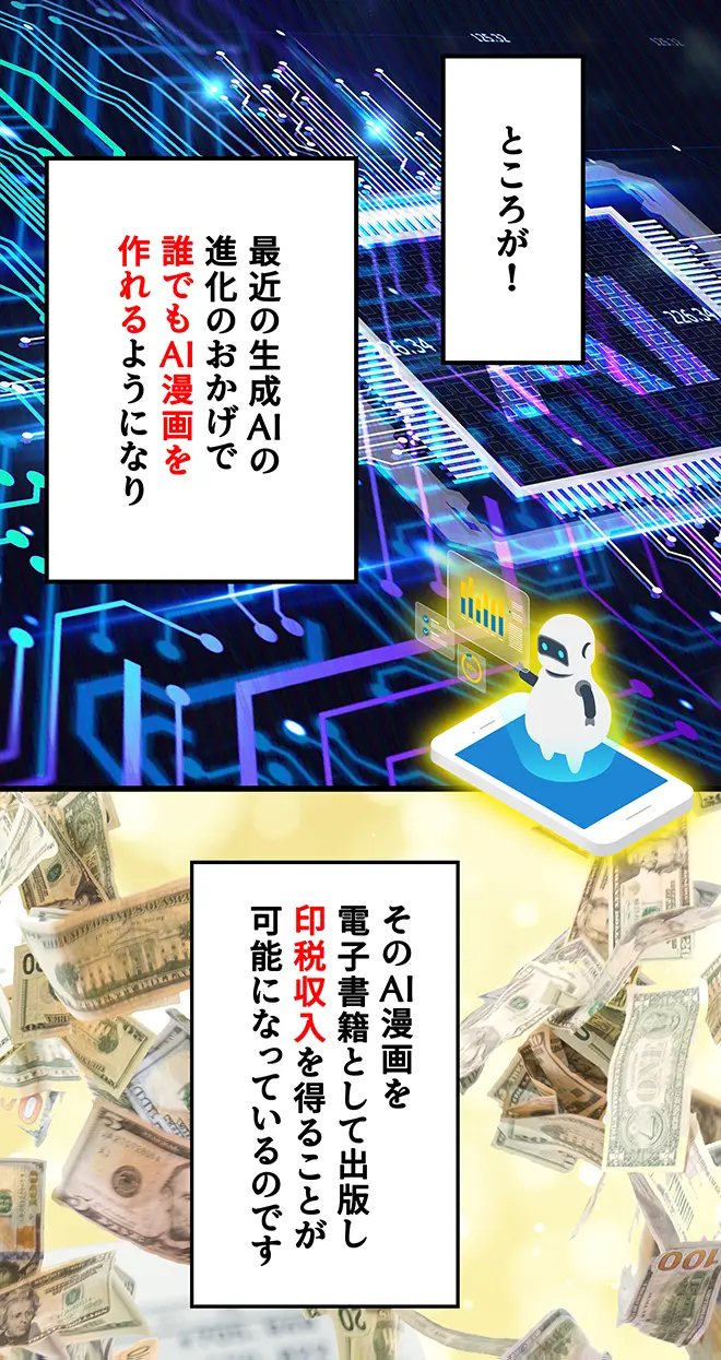今ではAI漫画から入ってくる印税収入が本業の収入を超えています(笑)