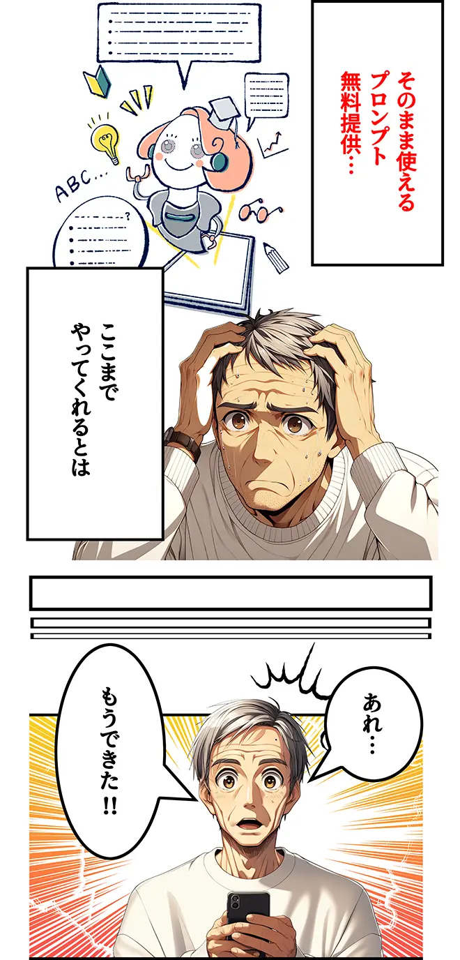 ほとんどそのまま使えるプロンプトがあるので、3日間の講座が終わった後、すぐにAI漫画を作ることができました。