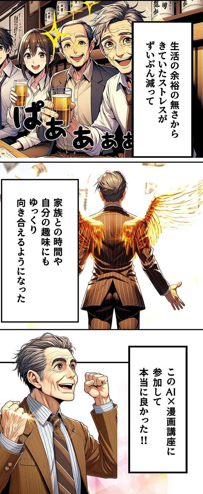 教えていただいた通りに進めたら本当に簡単にAI漫画を作れて、今ではほとんど趣味に近い形で出版しています。